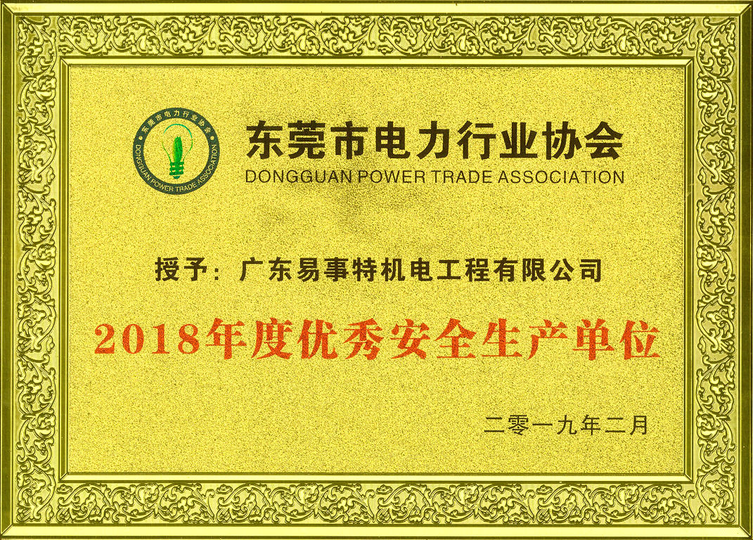 廣東易事特機電工程有限公司在此次評選活動中榮獲“2018年度優(yōu)秀會員單位”、“2018年度優(yōu)秀安全生產(chǎn)單位”和“2018年度優(yōu)秀品牌建設(shè)單位”稱號。