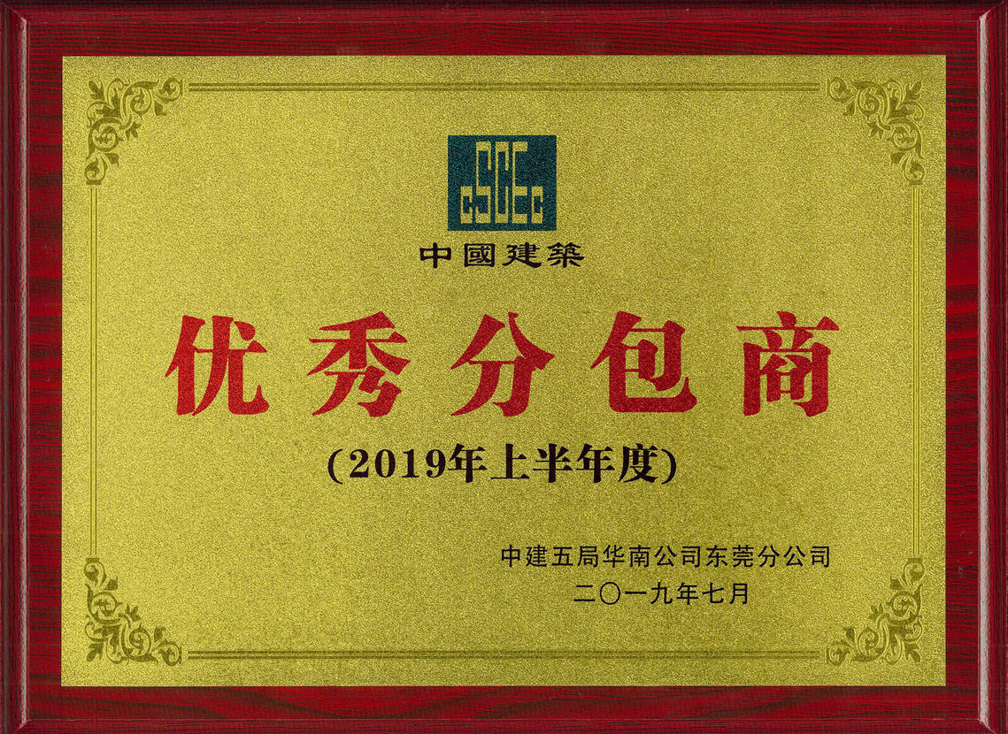 2019年7月,中國建筑第五工程局有限公司華南公司東莞分公司舉辦了“2019年上半年度優秀分包商頒獎大會”。會上,中建五局華南公司東莞分公司對在2019年上半年有作出重要貢獻的合作企業進行表彰。廣東易事特機電工程有限公司獲評“2019年上半年度優秀分包商”殊榮。